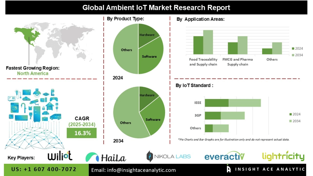 InsightAce Analytic Pvt. Ltd. announces the release of a market assessment report on the “Global Ambient IOT Market Size, Share & Trends Analysis Report Product Type (Hardware, Software Platform, and Services), By Application (Food Traceability & Supply Chain, FMCG & Pharma Supply Chain, Ecommerce Delivery Solutions, Harvesting, Sensor-Based Monitoring of Equipment, Emissions Tracking, Building Automation And Air Quality Tracking, and Others), By End-User (Agriculture, Food & Beverage, Pharmaceutical, Apparels and Clothing Industry, E-Commerce Industry, and Others)-Market Outlook And Industry Analysis 2034″